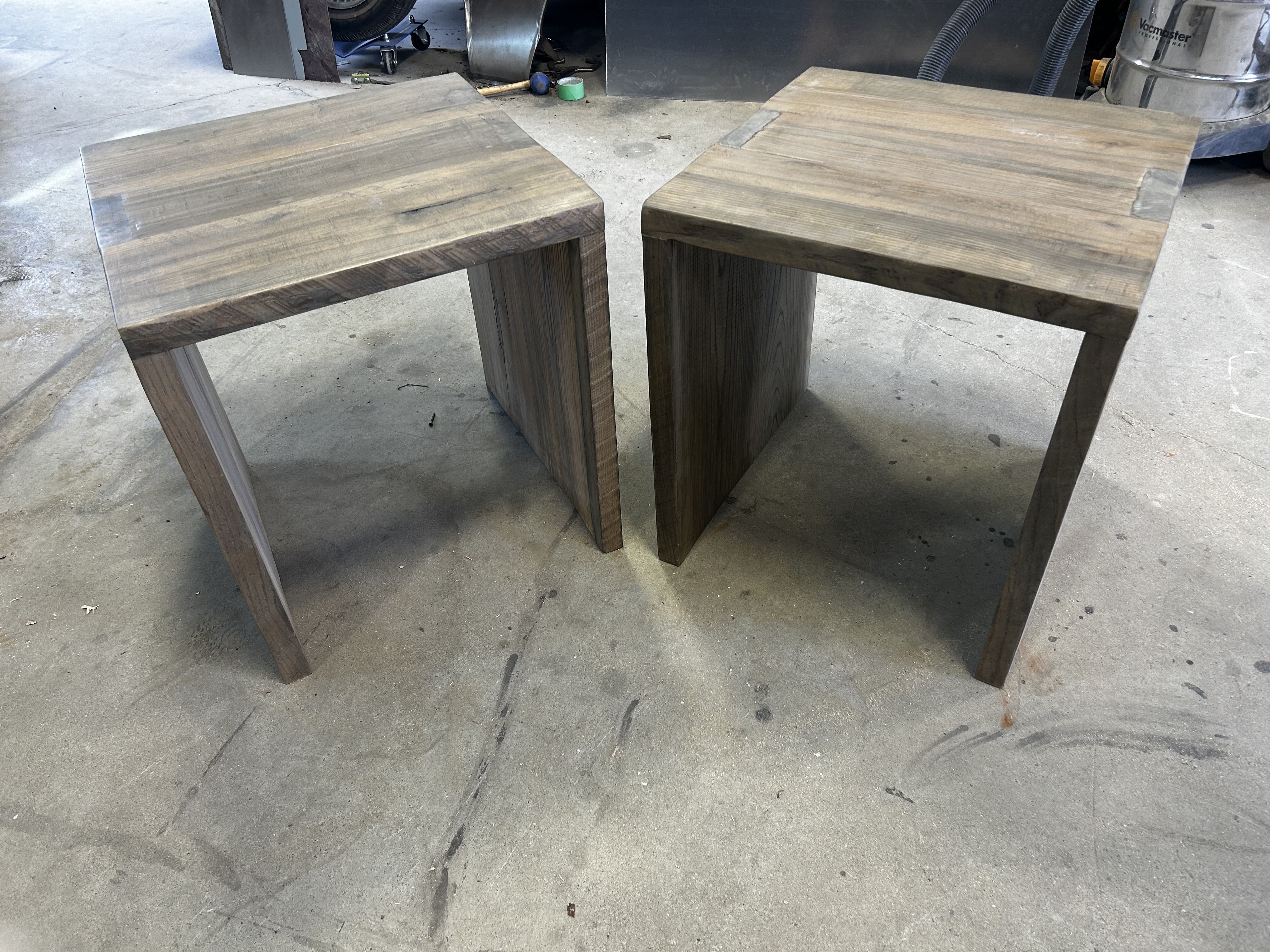 Crafted from rough cut ash with a natural dye stain finish , these side tables are similar to ones found in high end furniture stores (looking at you RH). This transitional style would work in a living room or bedroom.